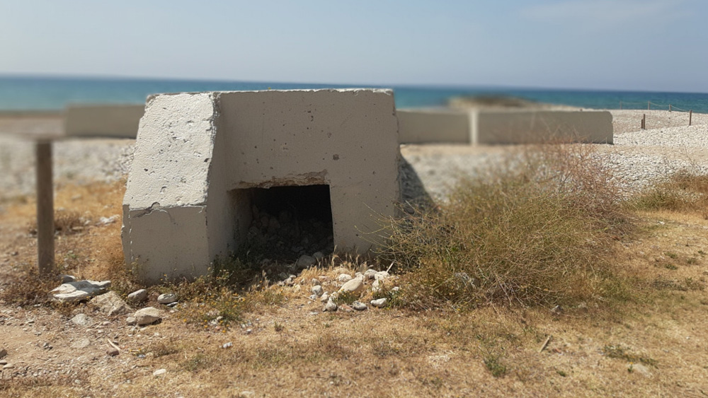 Construït cap a l’any 1937 durant la Guerra Civil, aquest búnquer defensiu forma part de les fortificacions que el govern republicà va erigir al llarg de la costa catalana per defensar-se d’atacs marins i desembarcaments. Situat just a la platja de la Mota de Sant Pere, l’estructura presenta un disseny semicircular amb troneres per permetre foc de flanqueig, una tàctica eficaç contra potencials desembarcaments.