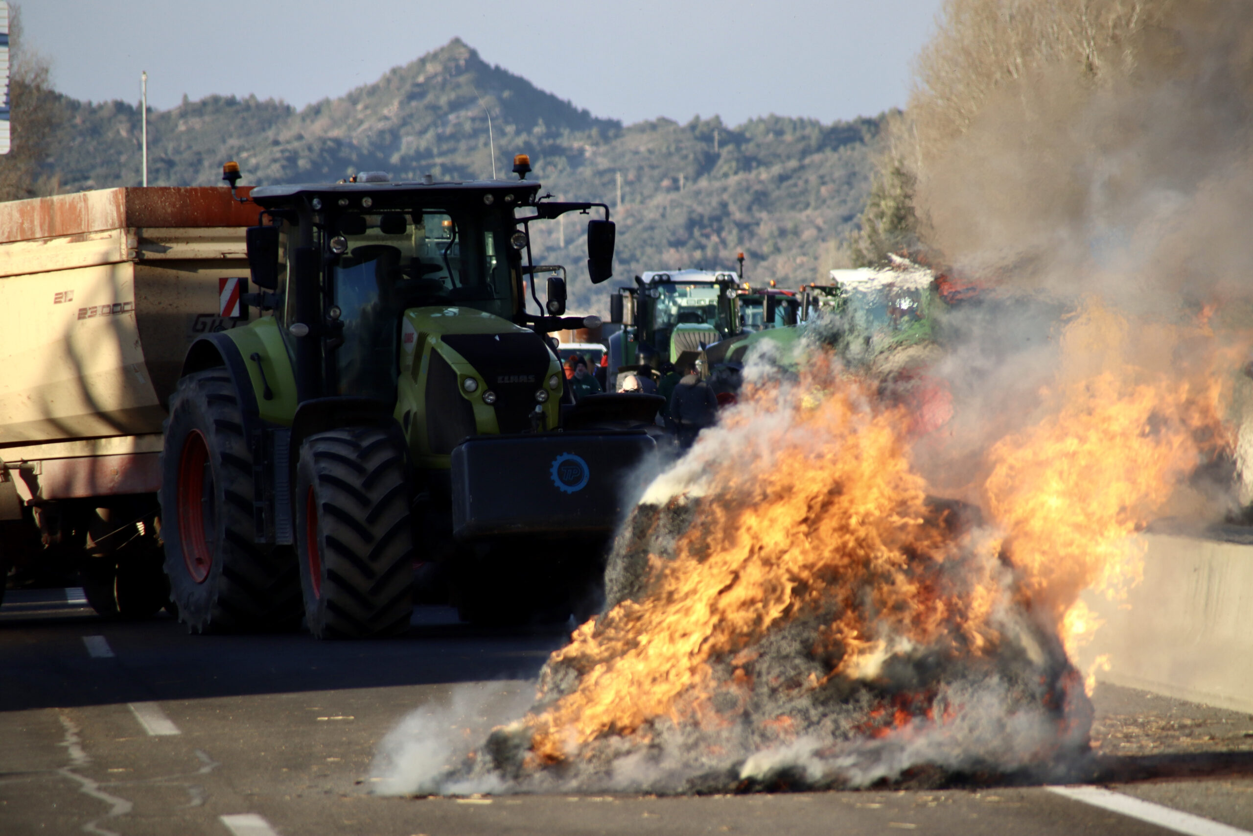 De la mateixa manera, uns 150 pagesos de la Catalunya Central continuen mobilitzats al tall a la C-16 a l’alçada d’Olvan (Berguedà). Els agricultors van tallar la via dijous a la tarda i aquesta serà la segona nit que passen a la carretera. La seva intenció és allargar la protesta durant tot el cap de setmana. Tot i que aquest divendres s’havien plantejat ampliar el tall a la C-16z -la carretera per on desvien el trànsit-, finalment ho han descartat. Sí que han optat per engegar alguns tractors i fer marxes lentes per aquesta via per entorpir la circulació de tots els vehicles que es dirigeixen cap al Pirineu. “Estem emprenyats, però encara hi ha esperança que -l’acord de la UE amb el Mercosur- es pugui revertir”, ha exposat Marc Burillo, pagès del Bages.